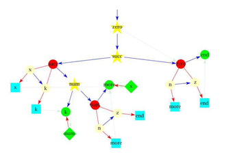 Commercially, the most significant PL project I’ve worked on has been Microsoft Highwire, where I developed an extensible syntax and macro system, designed visual representations of process calculi, and contributed to the design of various behavioral type systems for processes. The illustration above is an automatically-derived control flow visualization of a simple program written in a π-calculus-like process language, produced as part of Highwire.