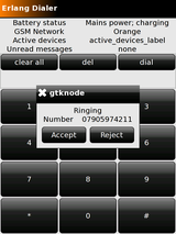 In 2007, I bought an Openmoko cellphone, to see if it could be shaped into a personal computing environment. I discarded its userland, keeping the kernel, X11 and core libraries and building my own replacement modem driver, dialer (illustrated on the right, above), address book and so forth. To do so, I ported Erlang to the phone, and contributed the scripts to Openembedded.
